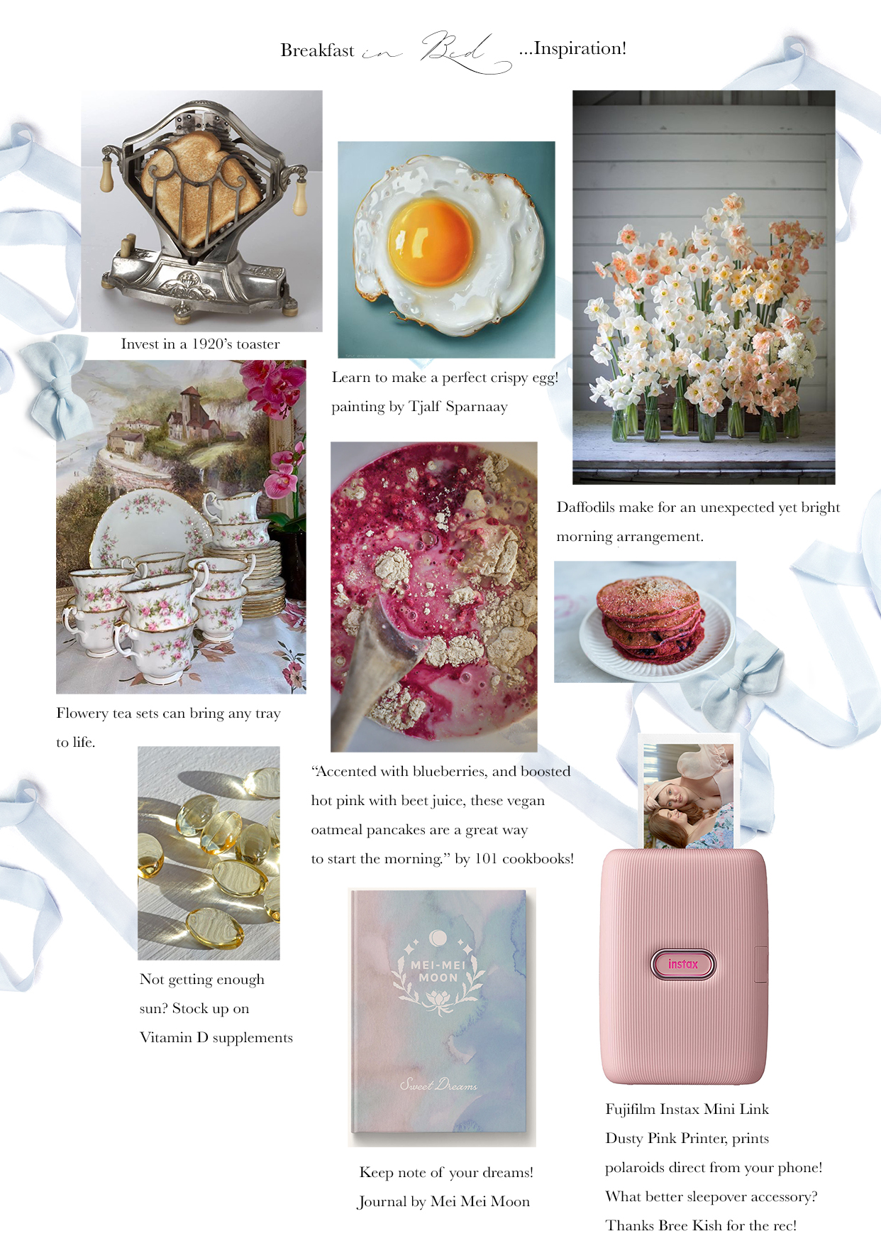 Serve up your favorite dessert on a luxurious bed table tray Host a movie night for youself, popcorn, tablet, chunky socks and a nostalgic movie! Photoshoot! Put on a matching Selkie dress, style yourself some big 60’s hair (we love YouTube tutorials) and set up your camera. Set up your bedside table! Put some love and thought into the things you want next to you in bed. Maybe a new noise machine or humidifier, your favorite magazines, a delicous candle and a dream journal. A luxurious, new pen may inspire you to write.