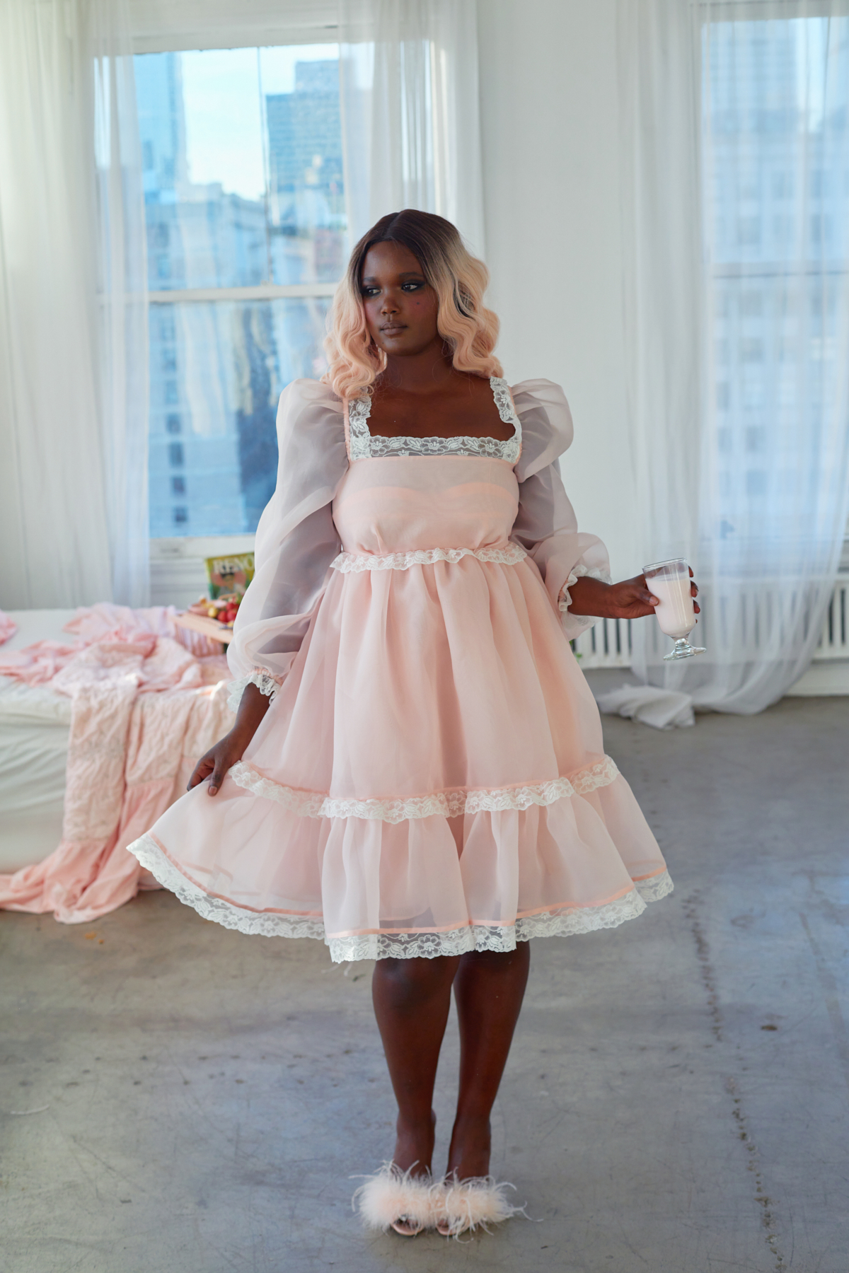 The babydoll dress (loosely defined as a garment with an empire waist and a skirt ending above the knee) has a storied history, and one somehow always rooted in gender politics. From its appearance at the turn of the 20th century and later revival by Balenciaga couture, through to Courtney Love's kinderwhore styling and Meadham Kirchhoff's homage to her, it has designated everything from the formal to the salacious, the irreverent to the chic. But, whether employed as 40s nightwear or in 90s punk performance, the babydoll has always been somehow synonymous with female liberation, whether emancipation from corsetry or the strictures of hemline etiquette.