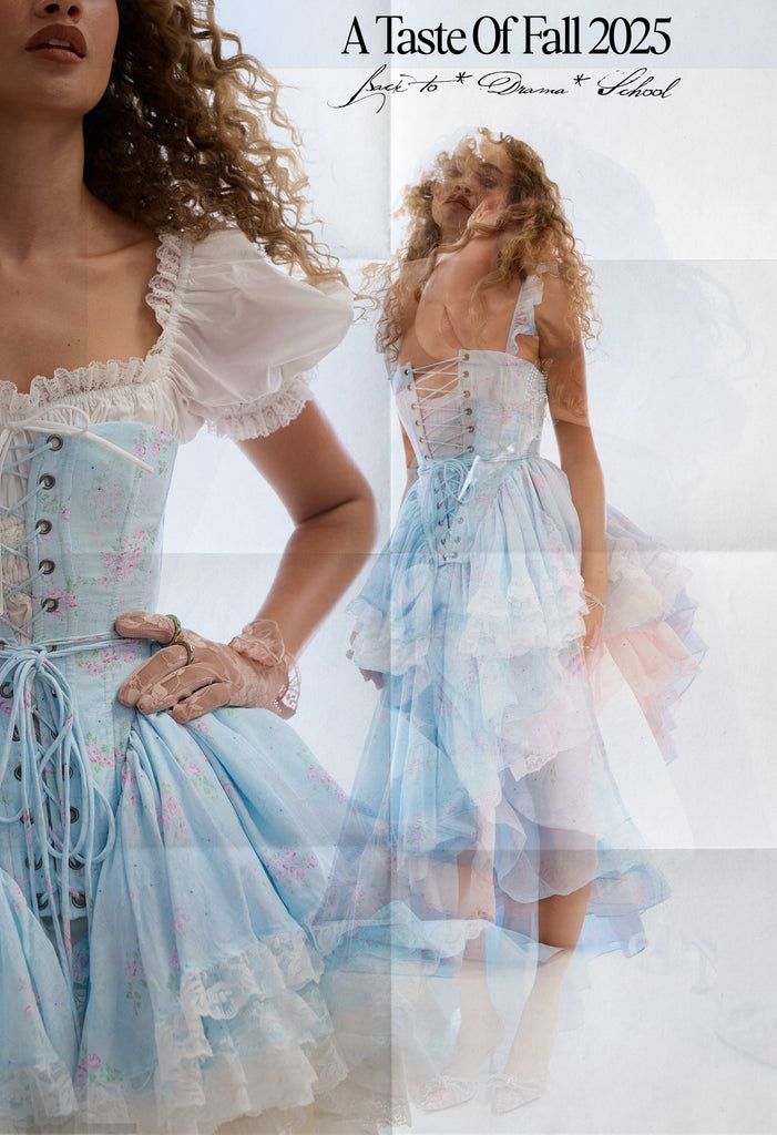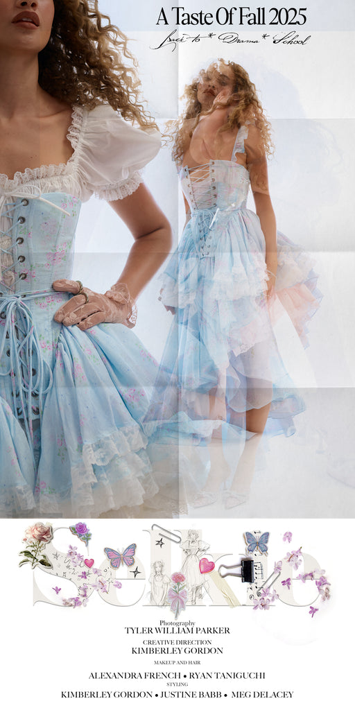 It's mid-August, back-to-school season, and we've got plenty of Selkie's classic nostalgic uniform moments in the latest collection. I absolutely adore school looks and have pulled from my own experience fondly since leaving my uniform and tie days behind in the UK. It's hard to choose my favorites from this drop, although I've got quite a few in my closet already—the all-black heiress dress, the South of France in, well, everything, both Wish dresses for that seriously Selkie look, and of course both the ballet starter sweaters are already on rotation. I'm especially excited to take some fall photos in the gorgeous Oktoberfest maiden gown. There are lots of new options in Galileo with a little bit of something for everyone.