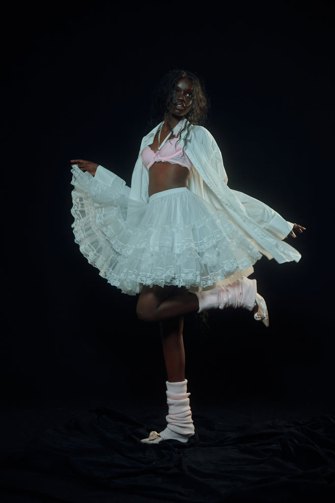 With this collection, we channel the feeling of dressing for yourself—whether it's intimate sleepwear for bedtime or an outfit for a date night. These pieces are designed to embody the strength of your true character, serving as a self-love letter by allowing you to be authentically you. Lingerie-inspired dresses—tiny like a teddy but wearable for real life—baby bloomers, lace-up corsets, and vintage-inspired slips make their grand entrance, with tiny pink hearts, romantic floral crests, and ribbons sprinkled throughout. We want you to feel amazing when you look in the mirror because when we can love our most true self, that's when we will be able to authentically write this letter: