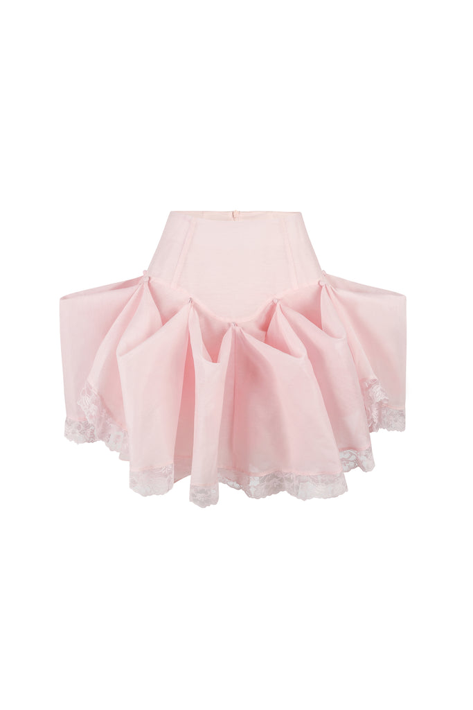 Fit for the most sensitive princess, layers and layers of organdy form a voluminous mini petticoat. With ruffles, and ivory lace detail, this can be worn underneath any skirt or dress for added drama, or paired with The a La Mode Corset for a garter-inspired look. Sublime for treasure hunting in antique bookshops or for reading fairy tales by candlelight in your cottage window nook.