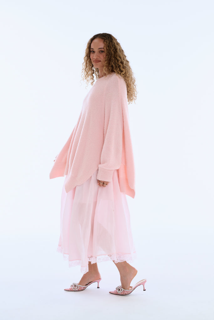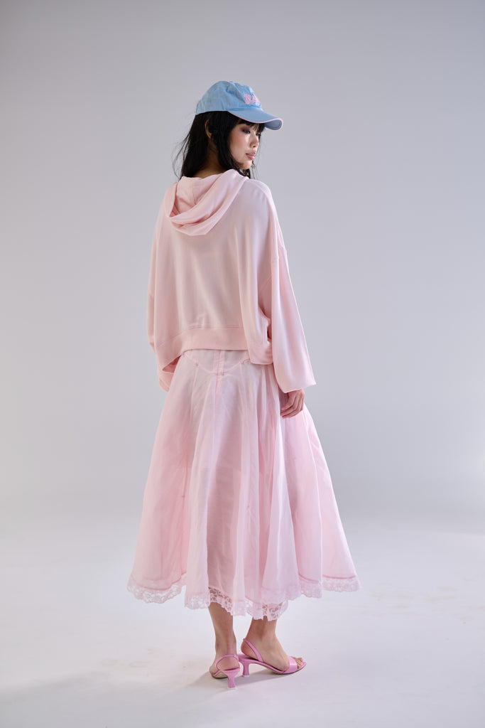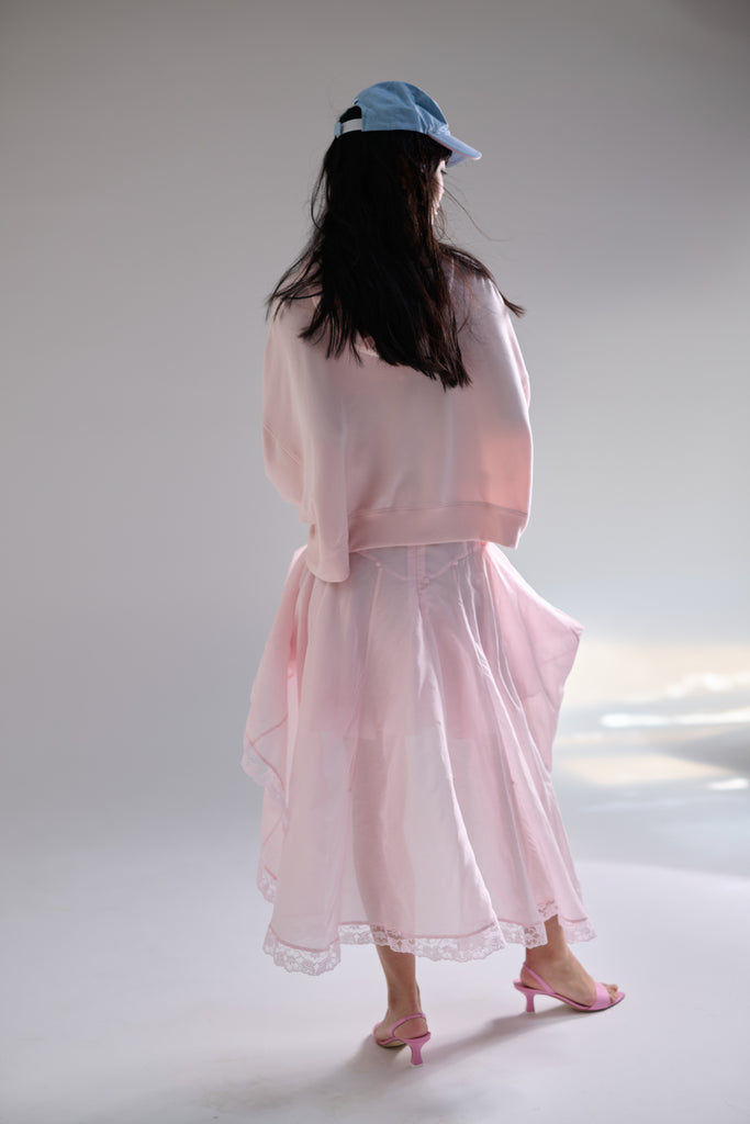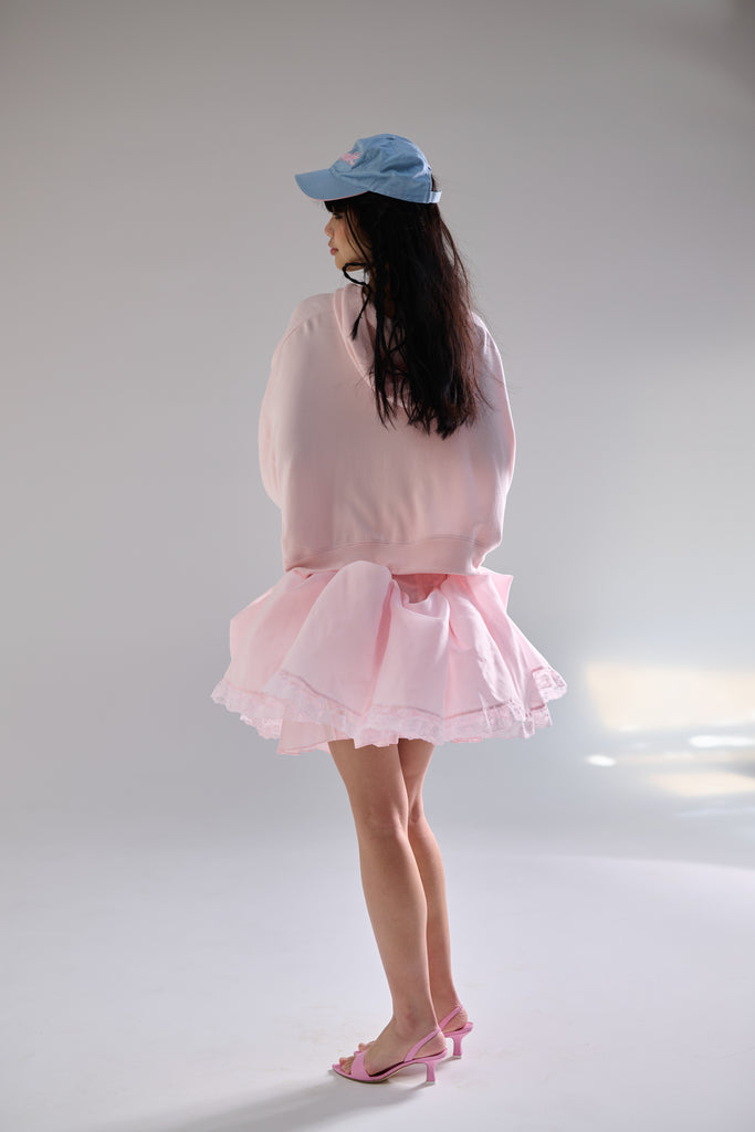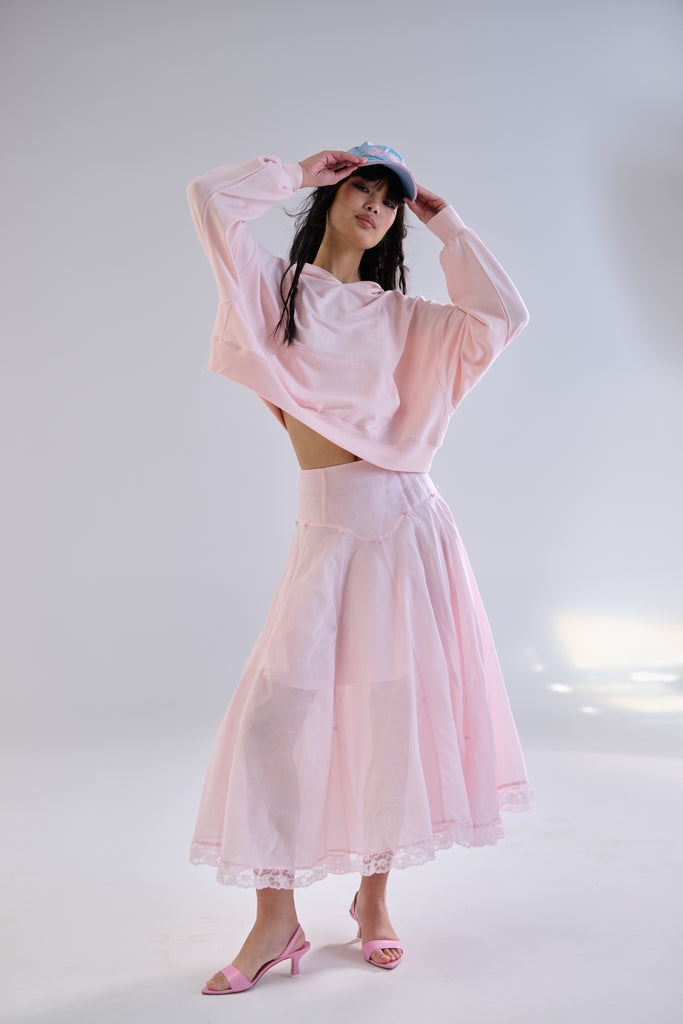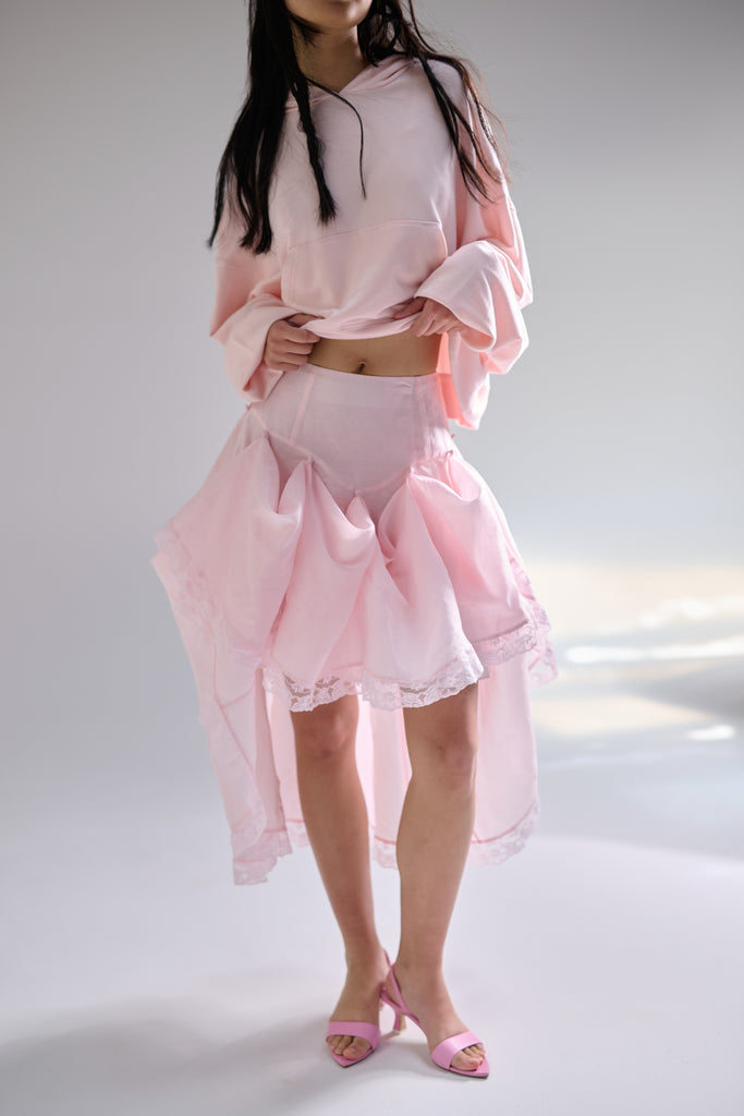 Organdy midi drop waist petticoat that bustles into a mini skirt