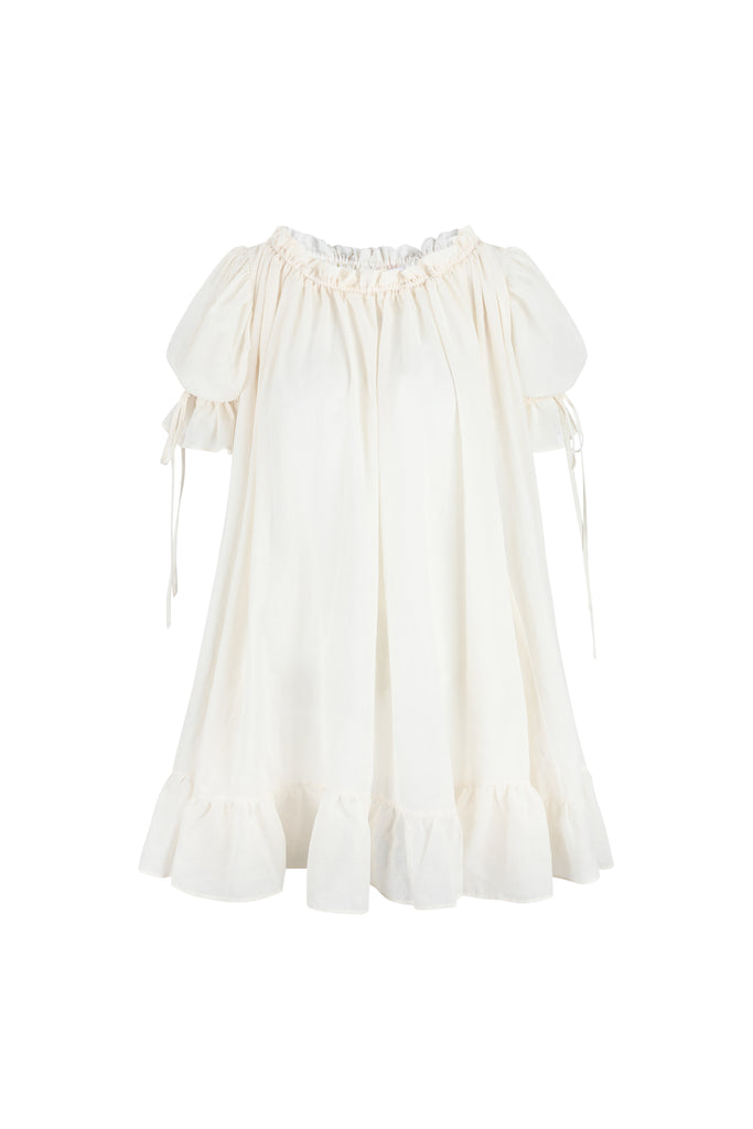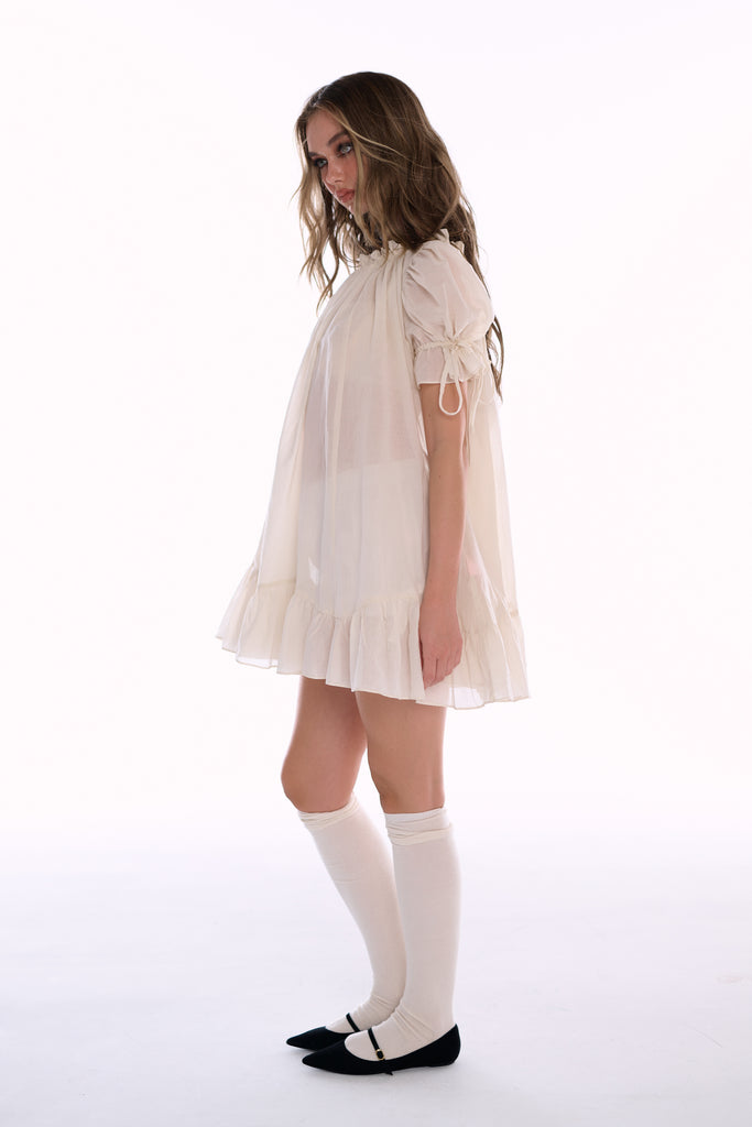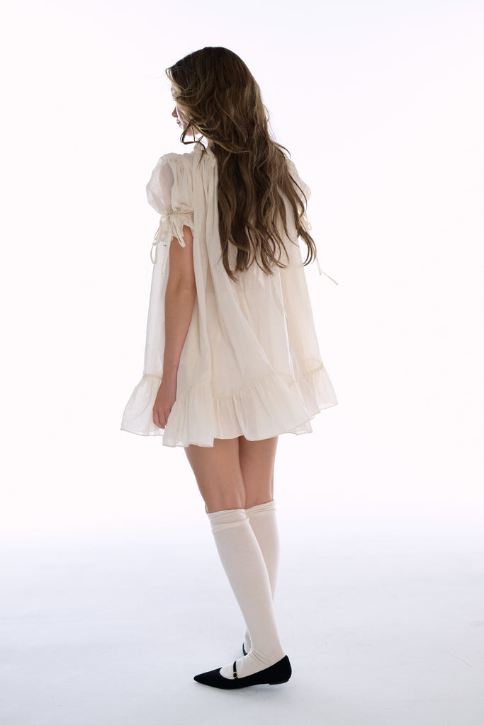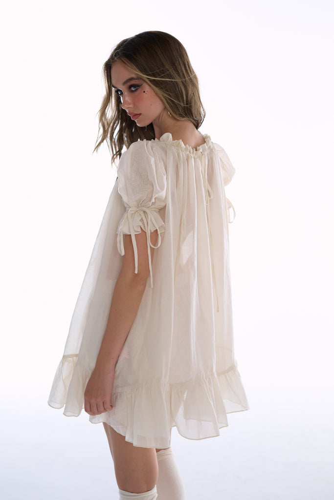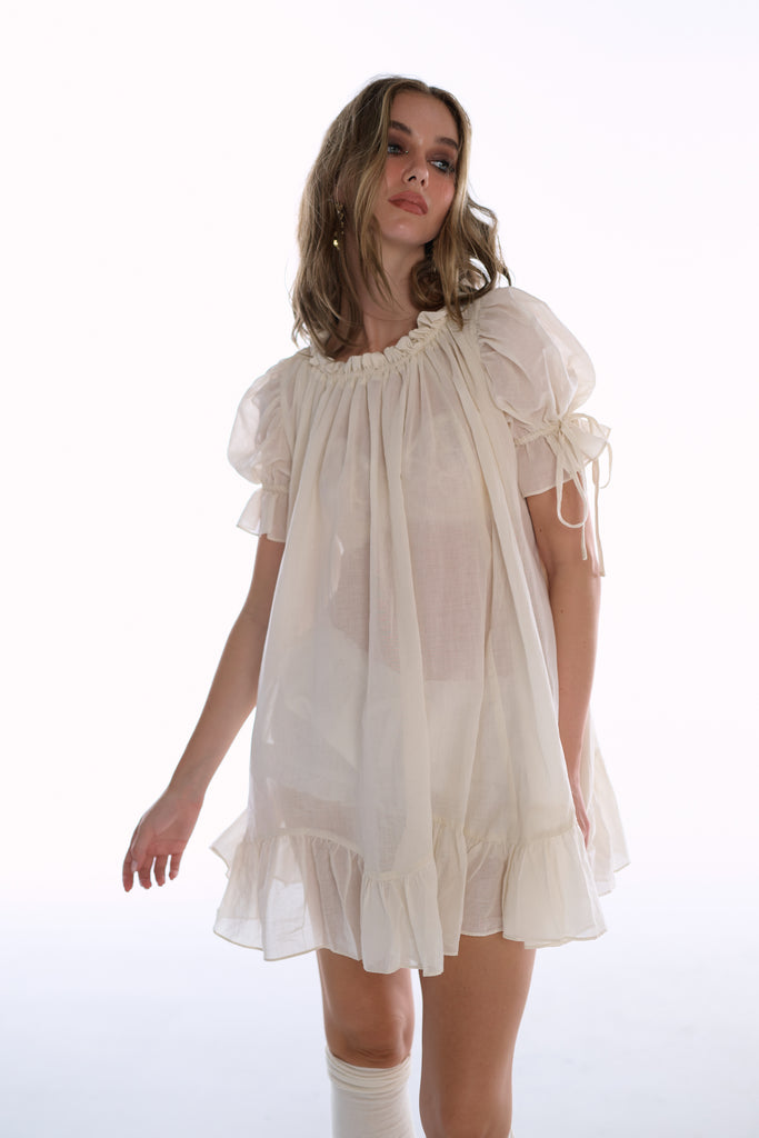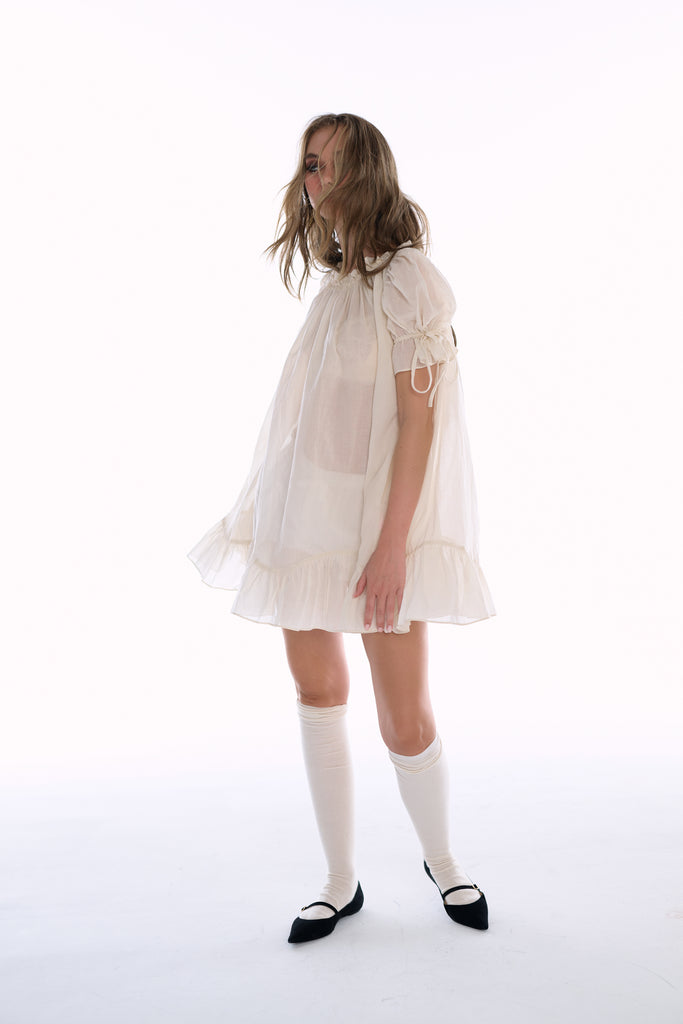 Oversized sheer chemise with functional drawstring at neck and sleeves