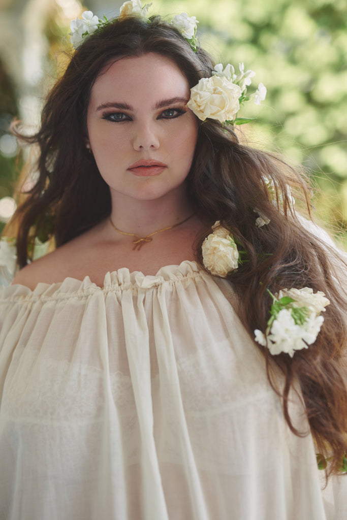Josie is 5’8” and wearing a size XS in Selkie. Her measurements are 32” bust, 24” waist, 36” hip.