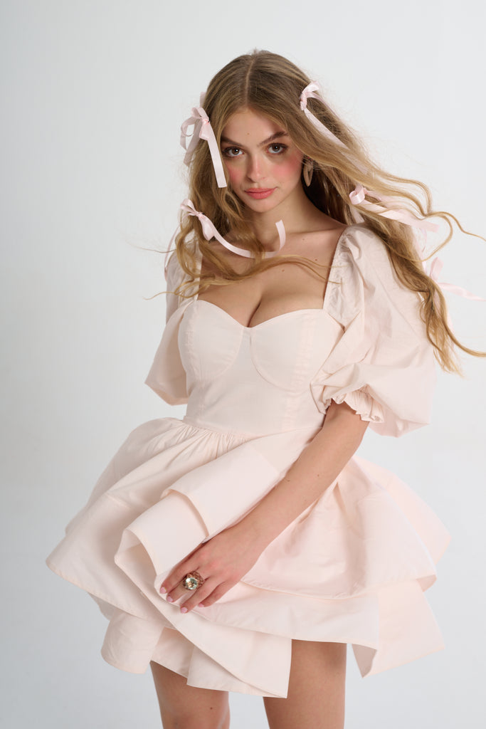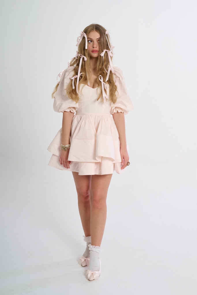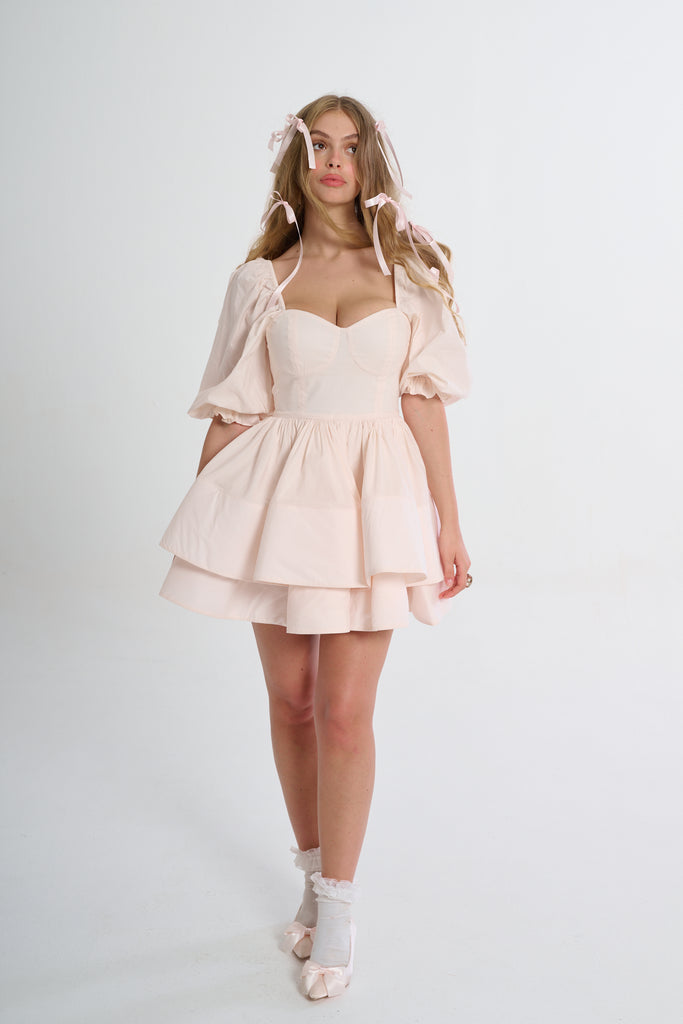 Glide through the day with elegant ease in the Lickety Split Vacation Dress. You’ll fall in love with its romantic sweetheart neckline, billowy puff sleeves, and structured tiered skirt. The color is the palest pink of satin pointe shoes and the flouncy double tiers that evoke flower petals. Pack this for a romantic weekend getaway: twirl through flower conservatory, toast at a wine tasting, and then share fresh pastas at a tiny Italian restaurant.