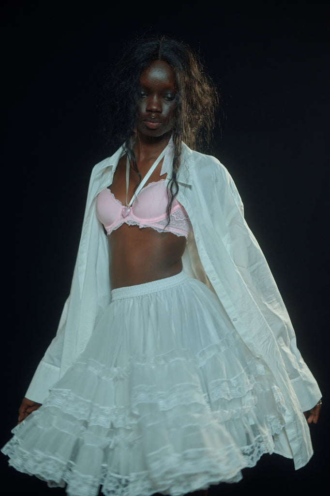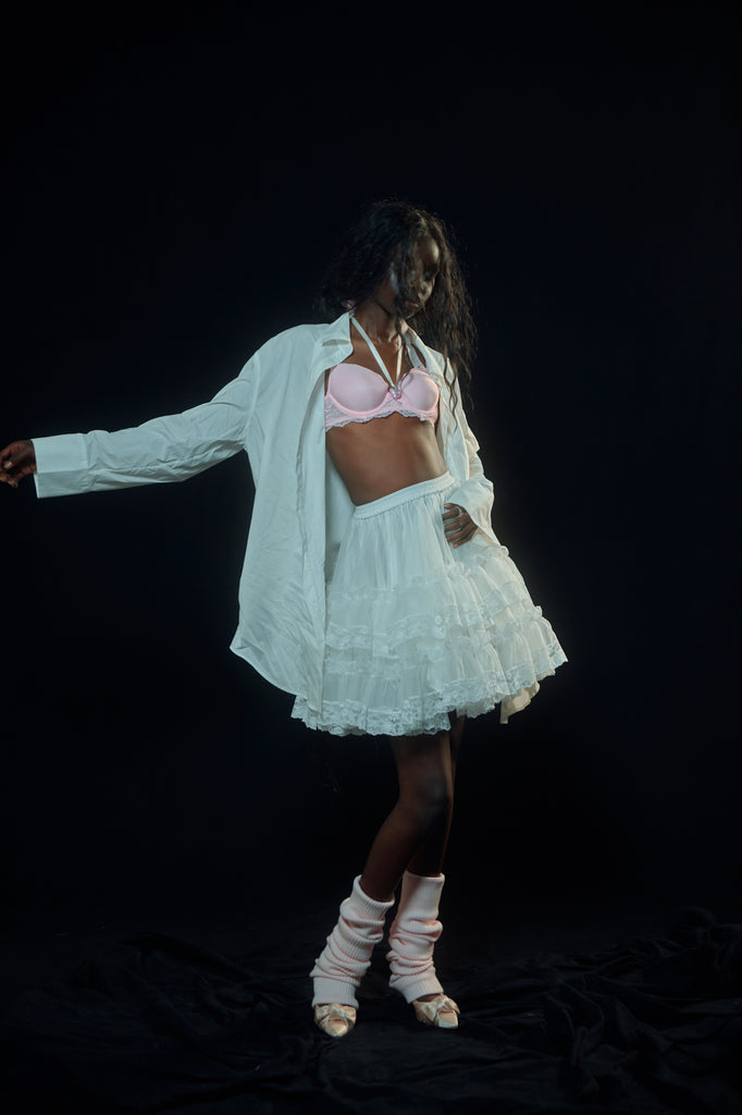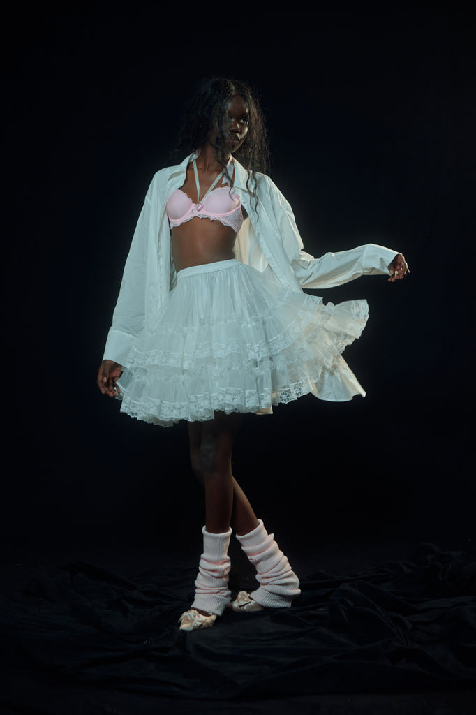 Layers and layers of organza form a voluminous mini petticoat. With a comfortable elastic waist, ruffles, and ivory lace detail, this can be worn underneath any skirt or dress for added drama. Or wear it alone, and allow it to steal the spotlight. Fully lined with crisp cotton for maximum comfort.