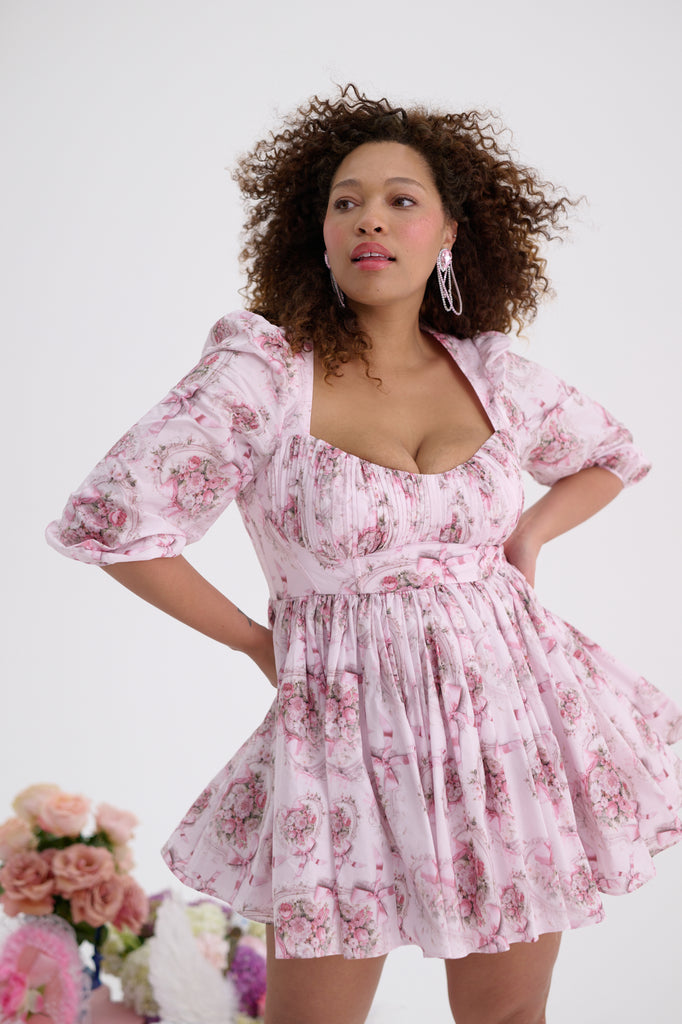 Suitors will forget you not in a mini dress that’s the whole kitten caboodle, boasting three-quarter length sleeves, a pleated bust, and a voluminous pleated skirt. Boning at the waist lends beautiful structure, while a 100% cotton lining feels soft and comfortable against the skin.