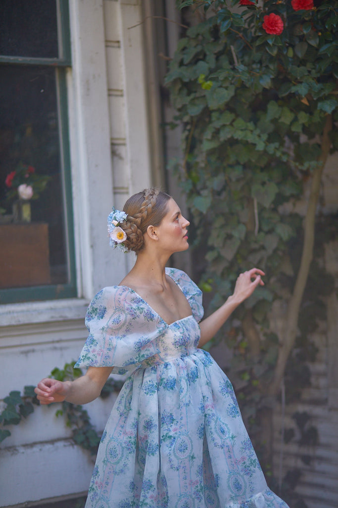 This antique French print from the 1800's is the perfect compliment to this romantic country dress. Inspired by barefoot memories in the south of France at Selkie founders Grandmothers 1980's local pub and restaurant (the restaurant named "La Belle Etoile" meaning the beautiful star) which has since closed, holding chickens and walking to the pool down the street, the French puff is made for daytime leisure and pleasure.