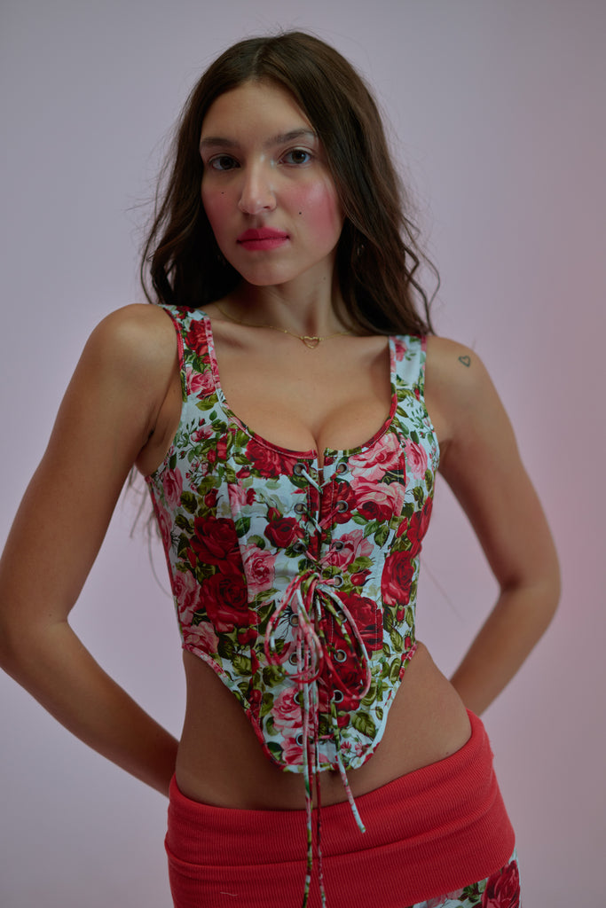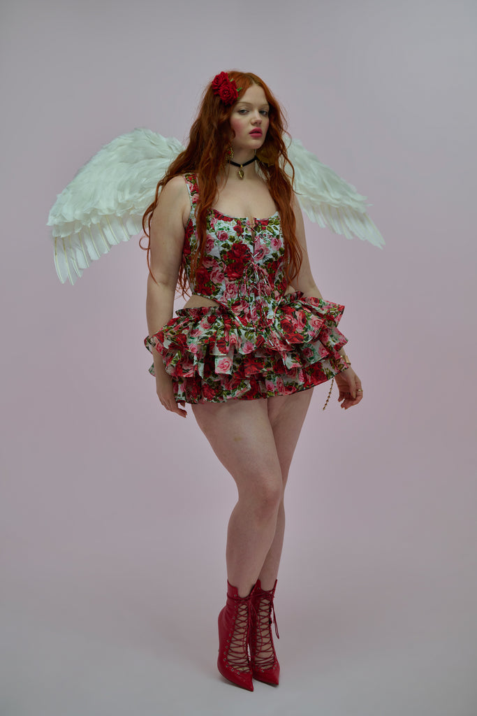 Our Duchess Corset captures the magic of perpetual bloom, featuring Selkie founder Kimberley Gordon's classic rose print, inspired by Alice's wonderland where roses are painted crimson red. This fully boned masterpiece in 100% heavy cotton features dual draw cords for customizable cinching, creating a silhouette worthy of garden tea parties year-round.