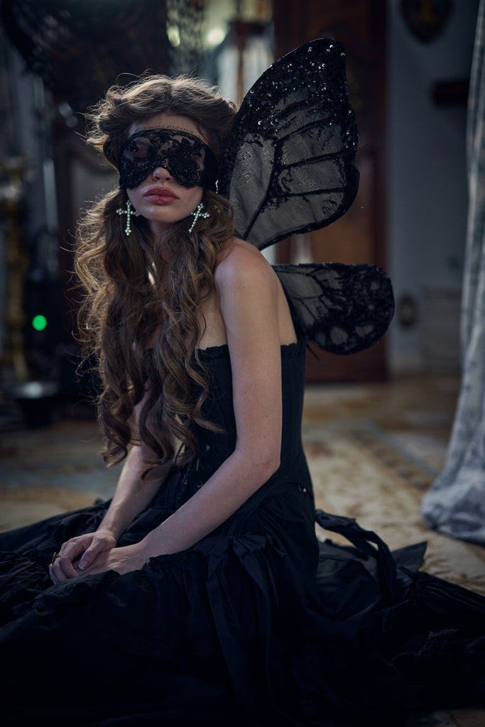 The Starry Night Sequin Wings are an otherworldly creation adorned with bespoke sequin embroidery, like a starry Parisian sky. In the silent unfurling of these wings, a vampiric saga unfolds—a wearable piece of dark artistry that beckons you to glide through the cobblestone streets beneath the cover of night.