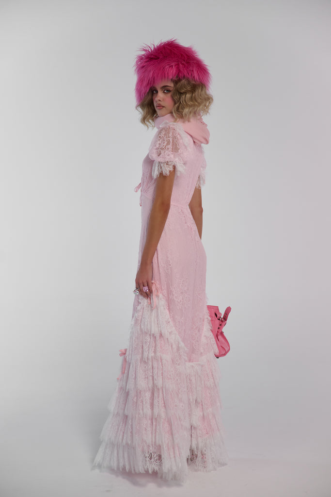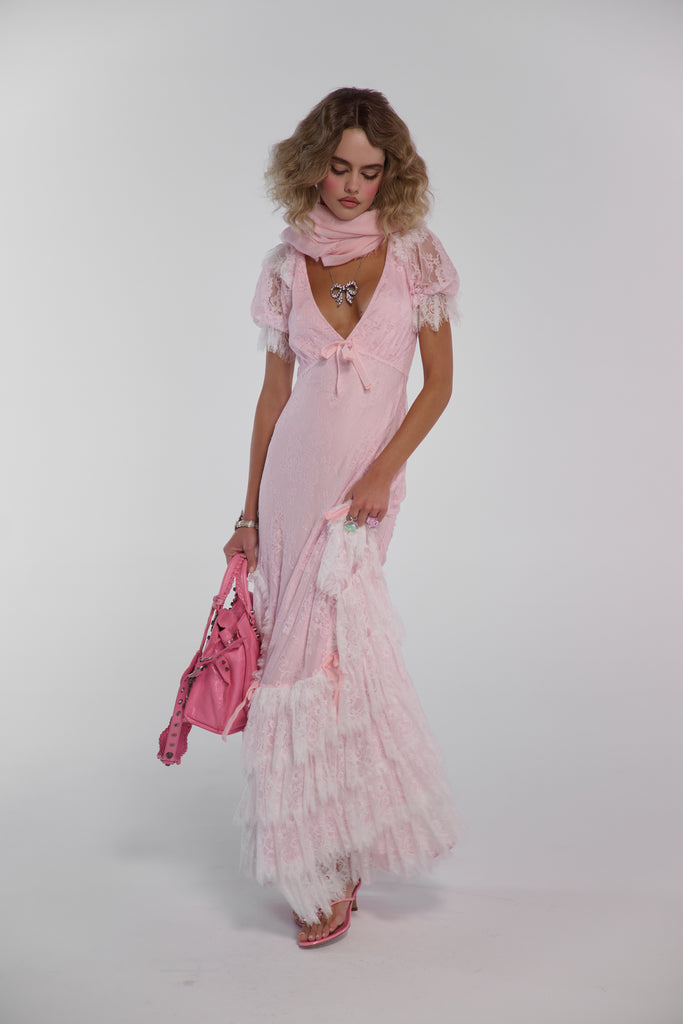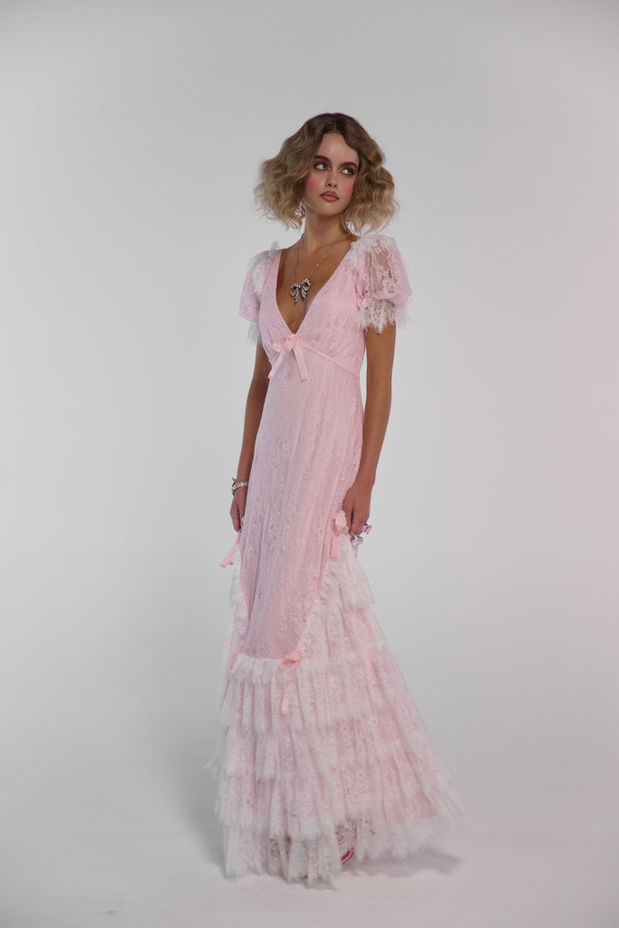 This exquisite 1920s-style lace slip dress captures Gatsby glamour with modern ease. Sheer lace cap sleeves frame the shoulders while layers of pleated ruffles move beautifully whether you're dancing the Charleston or swinging from chandeliers. Flattering on every curve, perfect with Cupid's bow lips.