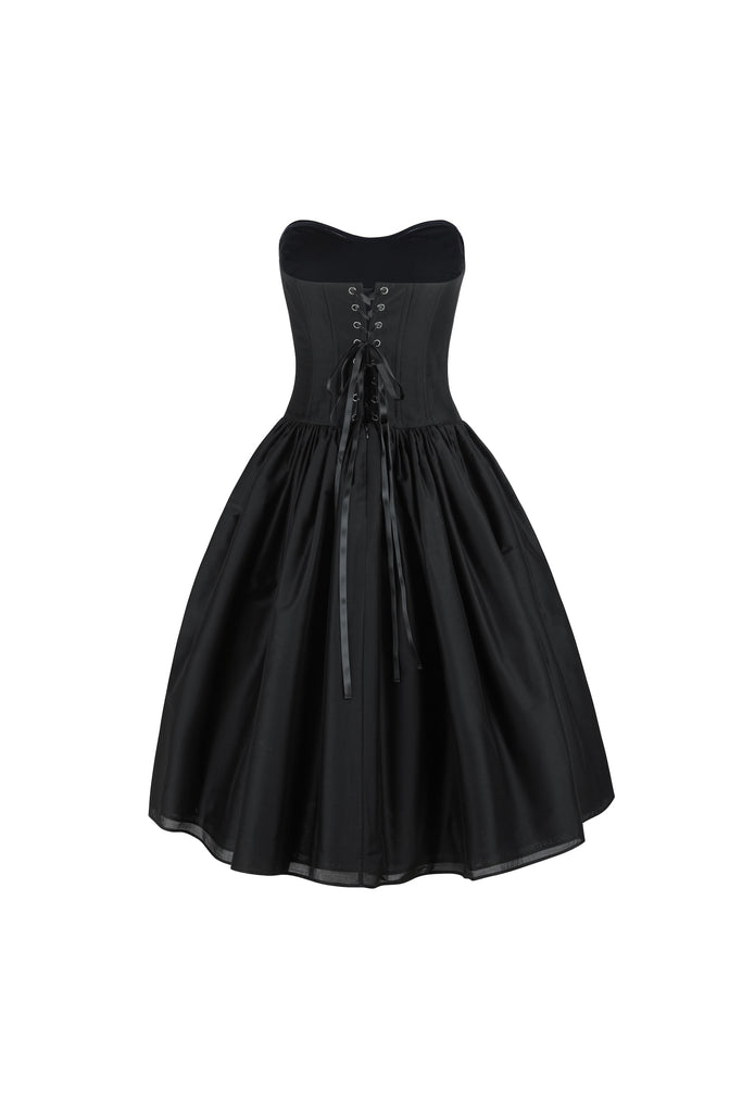 Like Degas' "Little Dancer" at the National Gallery of Art reimagined, this midi dress captures the rebellious spirit that scandalized Paris' elite in 1881. The drop waist and sweetheart bustline mirror the young ballerina's attire, while corset lacing traces your silhouette – transforming museum reverence into a ballerina party.