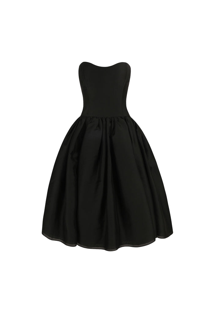 Drop-waist, strapless midi-dress with sweetheart bustline