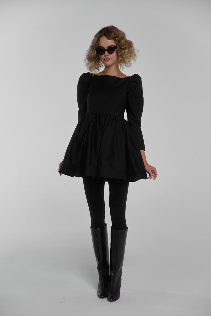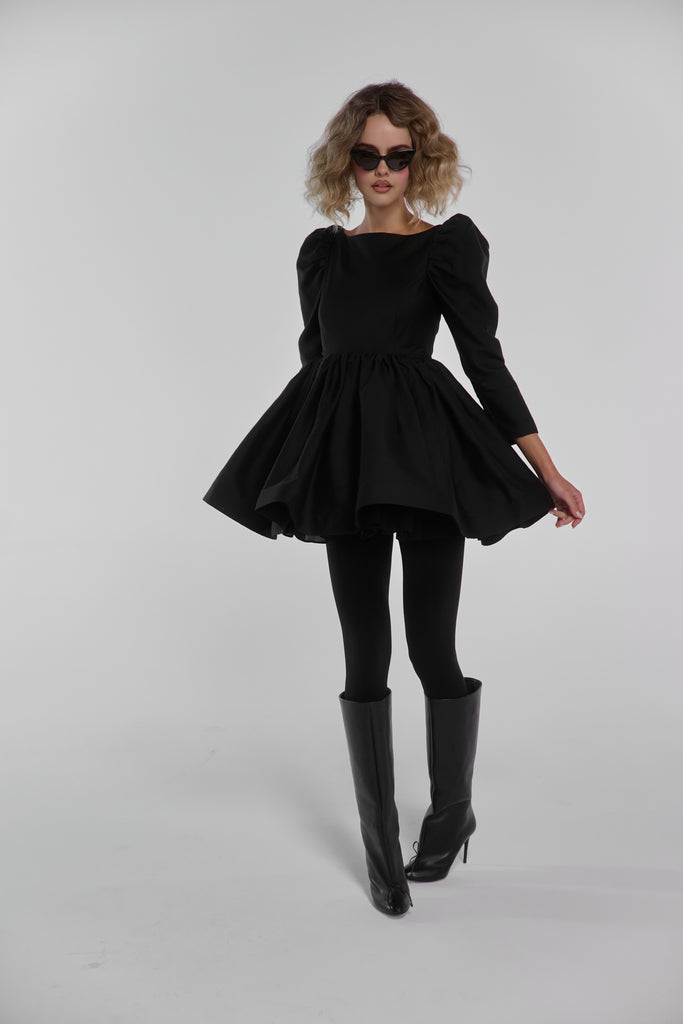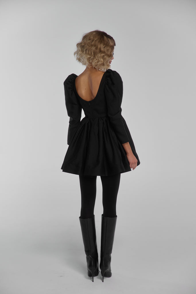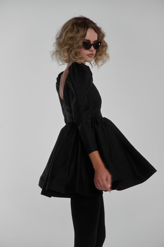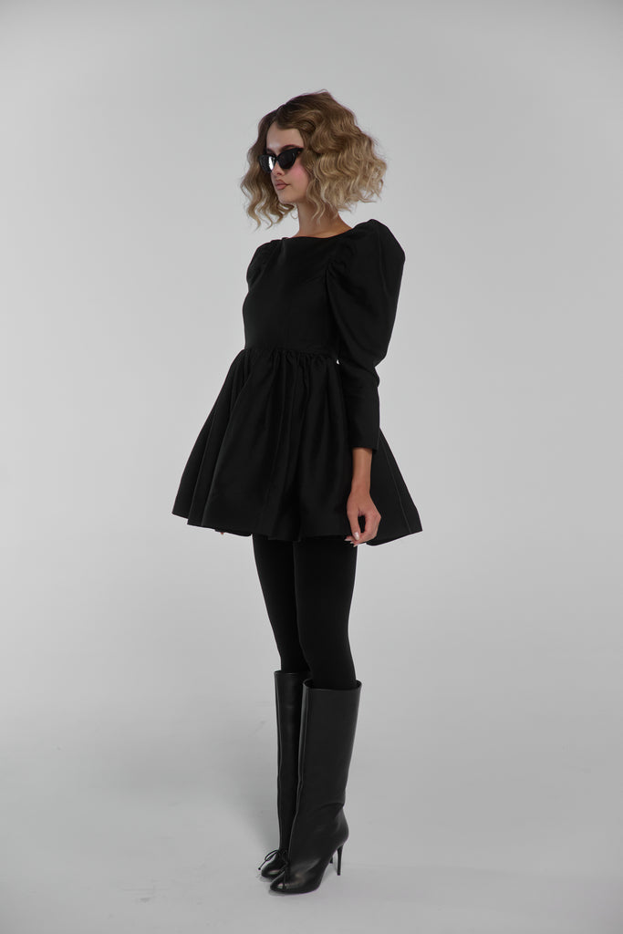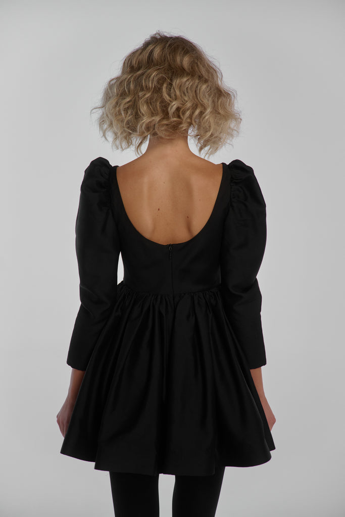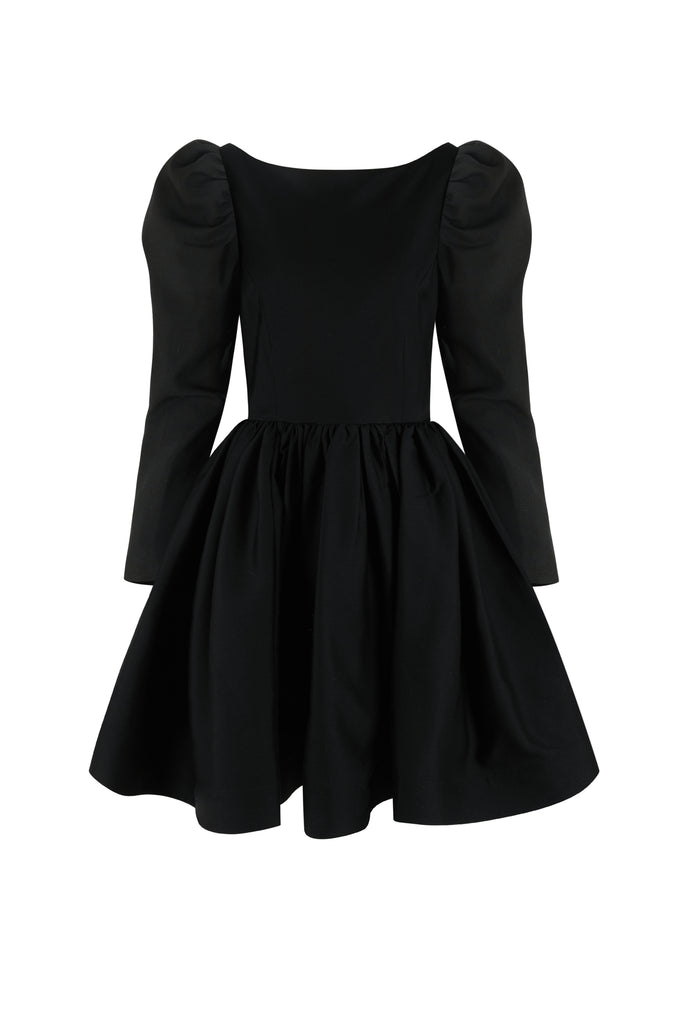 Crafted from silk wool, this mini dress pairs long puff sleeves with a perfectly twirling circle skirt. The kind of classic party dress you'll reach for year after year, easy to wear and impossible to replace. It's the little black dress built for Paris after dark, soft against the cold cobblestones, effortless when the dancefloor closes in. Best worn with champagne in hand and no clear destination.