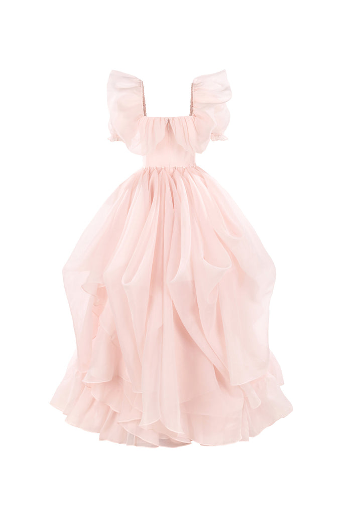 - Organza gown with cups, underwire, and adjustable bustle and train