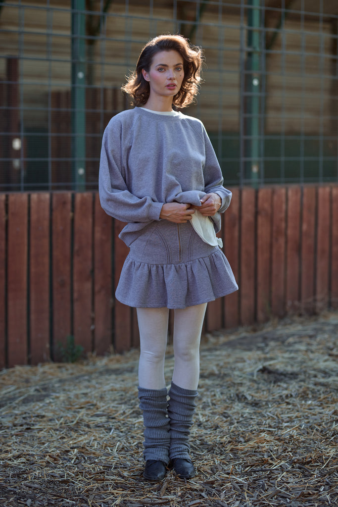 Designed for the frontier daydreamer, this French terry drop-waist mini skirt captures the spirit of the Wild West. The ruffled hem dances with every movement, lively as a saloon on Saturday night. A front zipper closure, smooth as a polished river stone, adds a practical touch to this prairie-inspired piece.