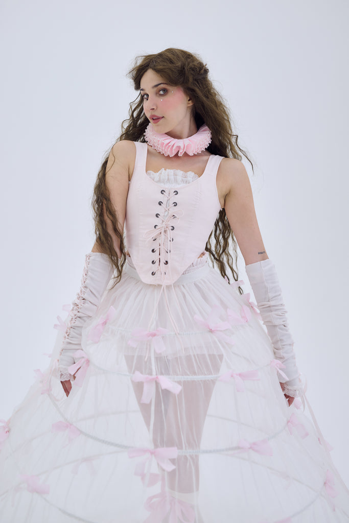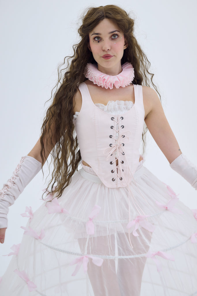 In a shade as delicate as a desert rose, the Duchess Corset now graces the Wild West in 100% heavy cotton! This fully boned corset laces up with two draw chords, allowing you to control the cinch as precisely as a seasoned wrangler. Whether you're attending a high-stakes poker game or a moonlit barn dance, make ‘em swoon from the dusty roads to bustling saloons.
