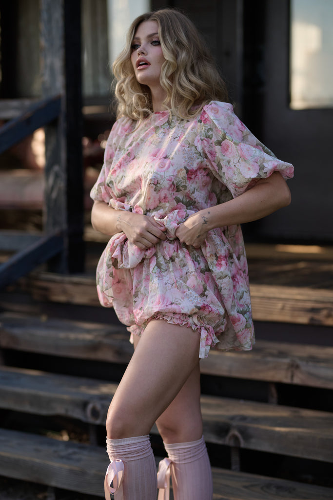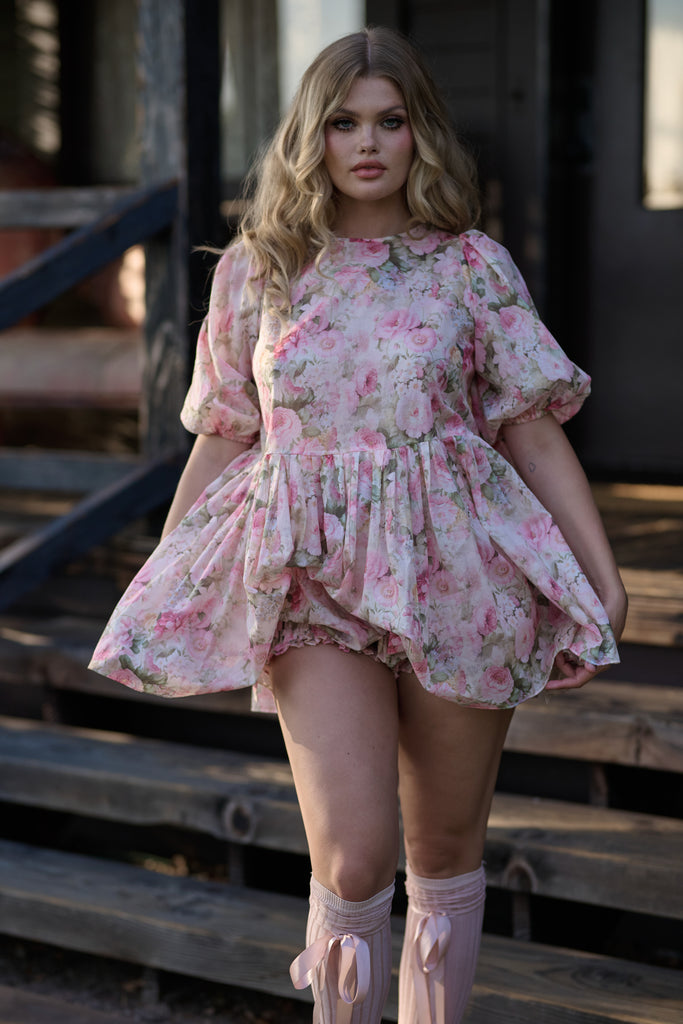 Jordyn is 5’9” and wearing a size XS in Selkie. Her measurements are 35” bust, 27.5” waist, 39.5” hip.