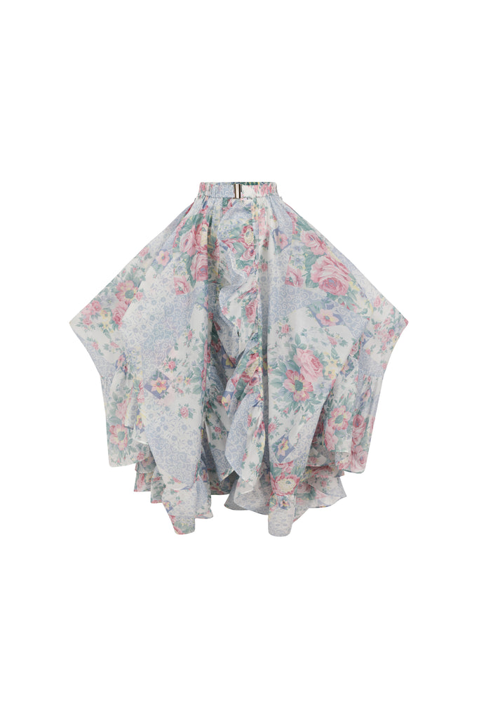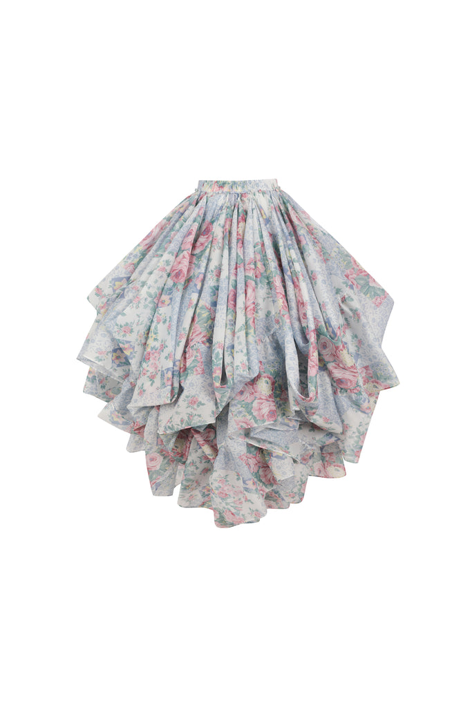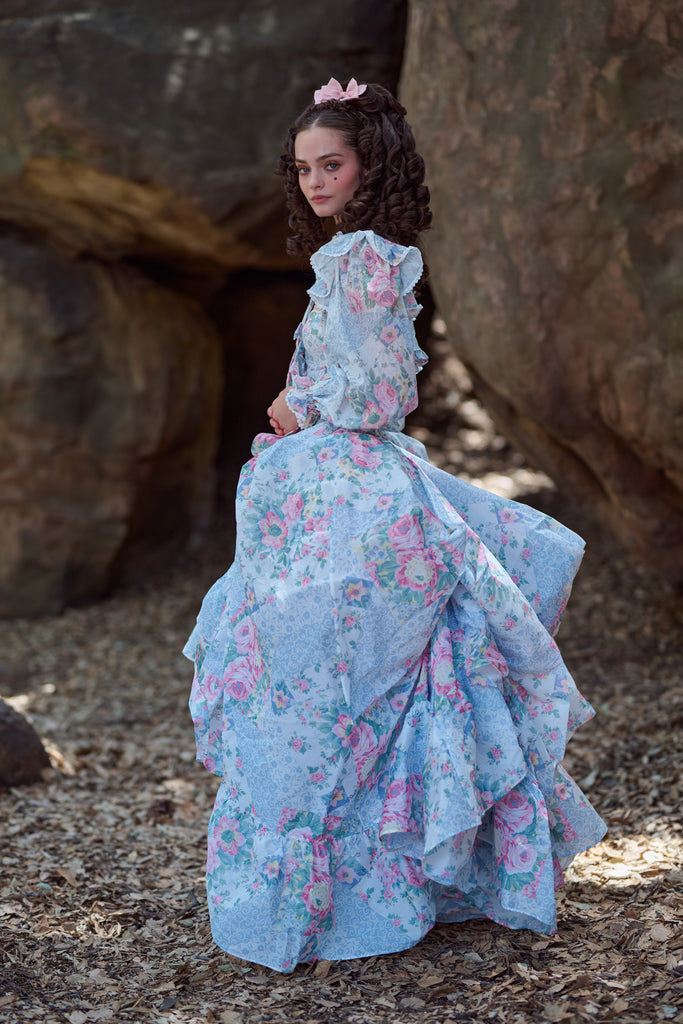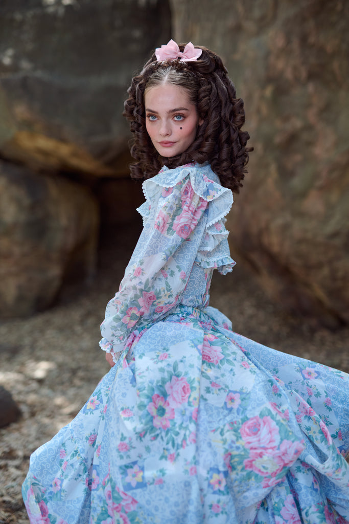 The drama of a train and the convenience of removing it—that’s why we love the tournure skirt. This luxury skirt topper fastens easily at your waist, turning any dress into an extravagant gown. The open-front skirt, festooned with ruffles aplenty, cascades to the floor before unfurling into a train as vast as the prairie—perfect for spreading a Wild West picnic beneath a cottonwood's canopy, complete with golden cornbread and sparkling apple cider.