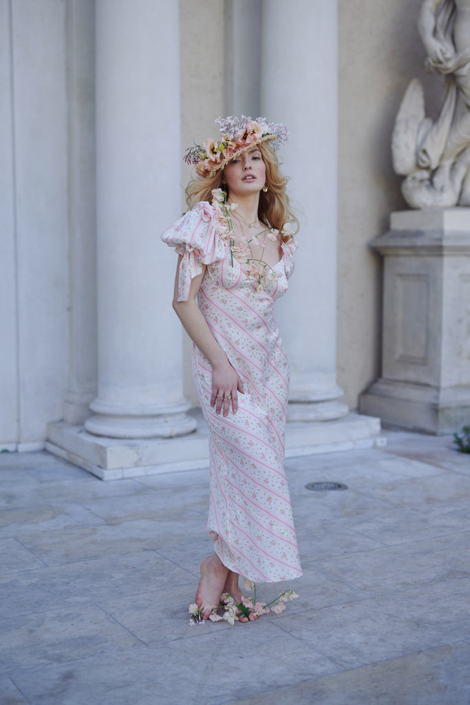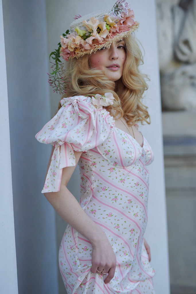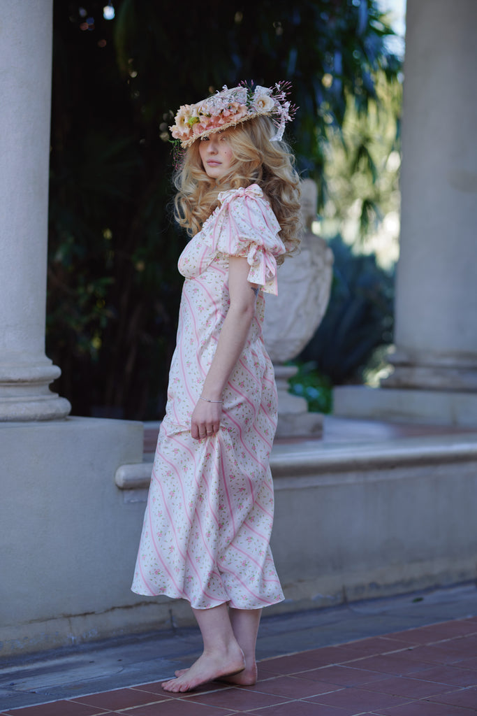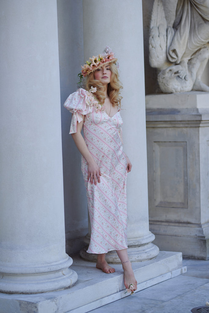 This silk charmeuse Poet Slip features delicate puff sleeves and soft cups, adorned with romantic silk bows at the shoulders and cuffs. Cut on the bias for an impeccable fit, it is finished with our Pillow Fight print, inspired by vintage bedsheets and childhood nostalgia.