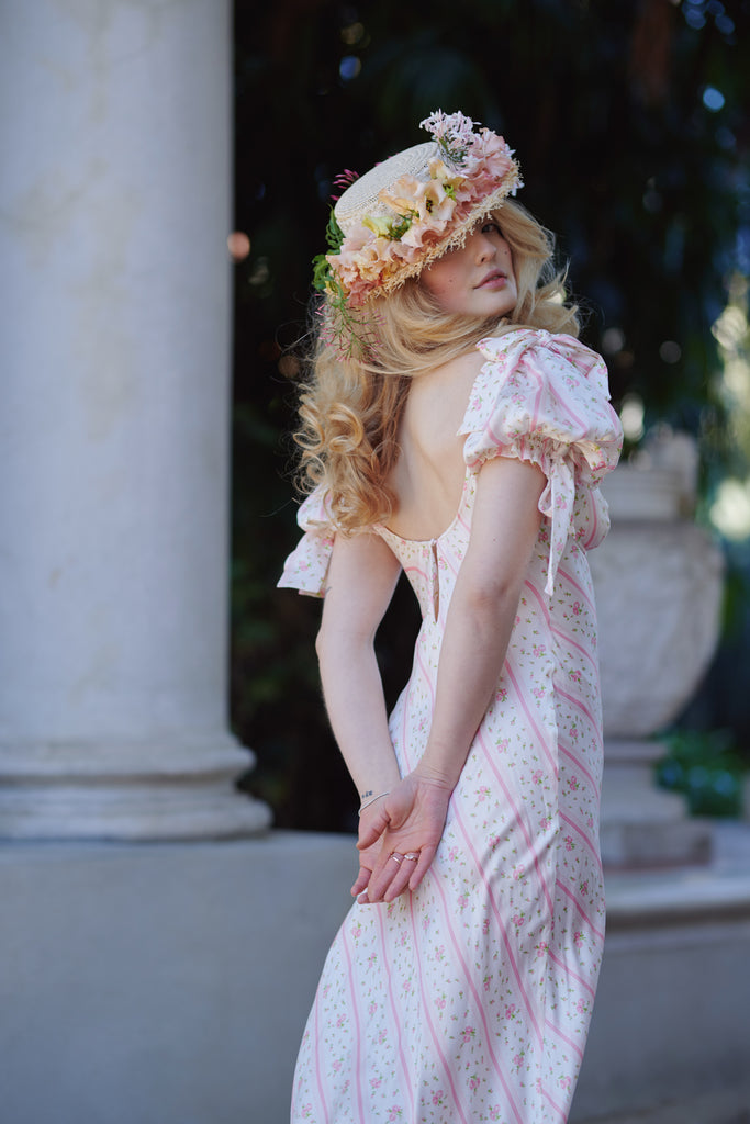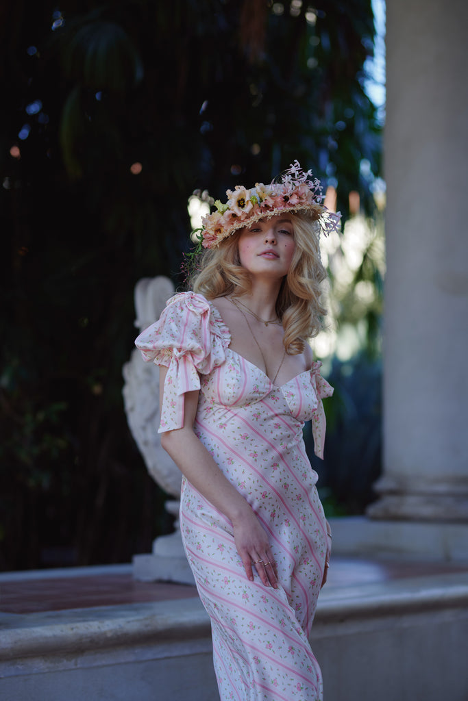 Mia is 5’8” and wearing a size XS in Selkie. Her measurements are 30.5” bust, 23.5” waist, 36” hip.