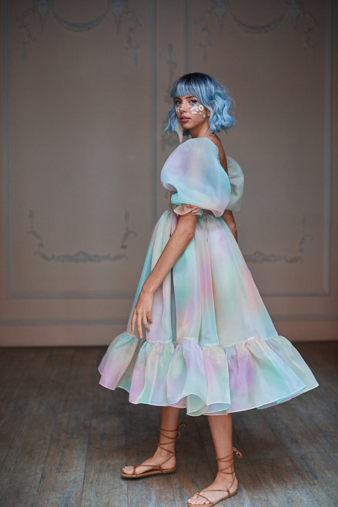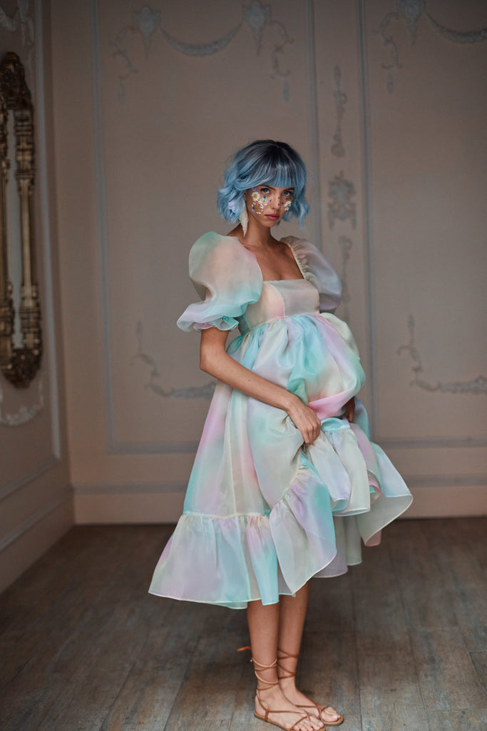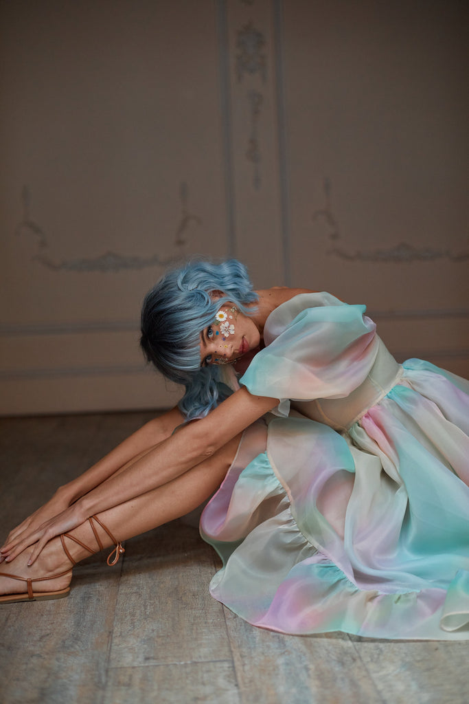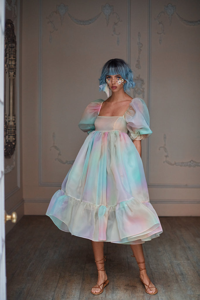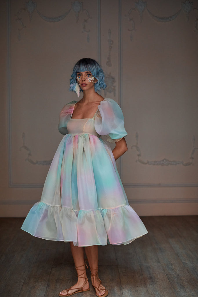 This gorgeously frothy dress is perfect for spinning through the city, dancing on roof tops, or standing out at the party. Imagined in Italy, dancing barefoot on the Trevi fountain...
