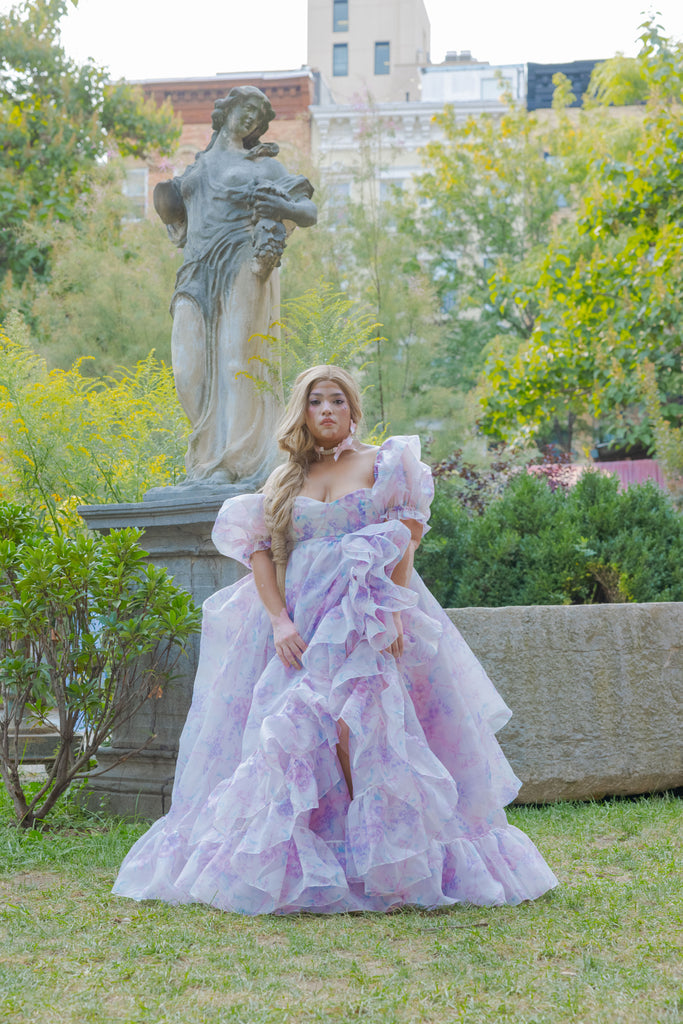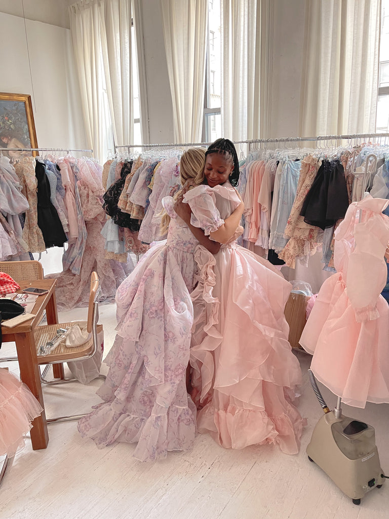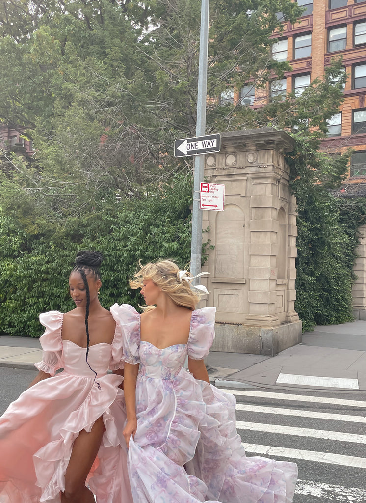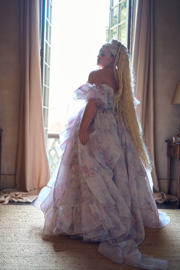 Ball gowns are packed with our branded garment bag and pink velveteen & gold logo hanger. Please note that your gown may take up to two weeks to ship.