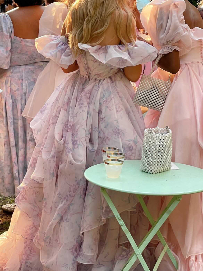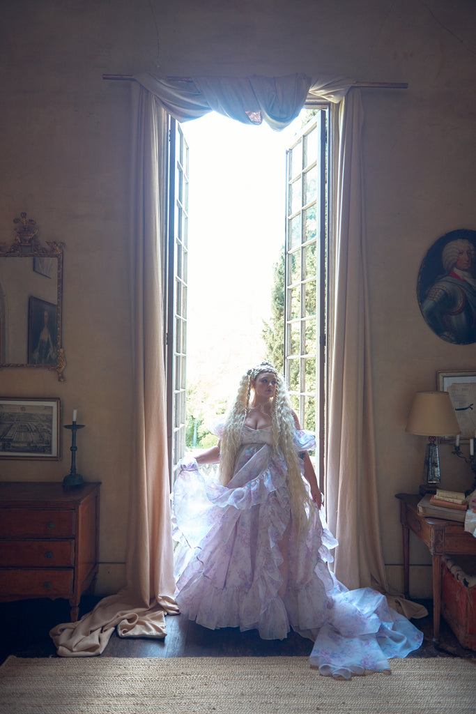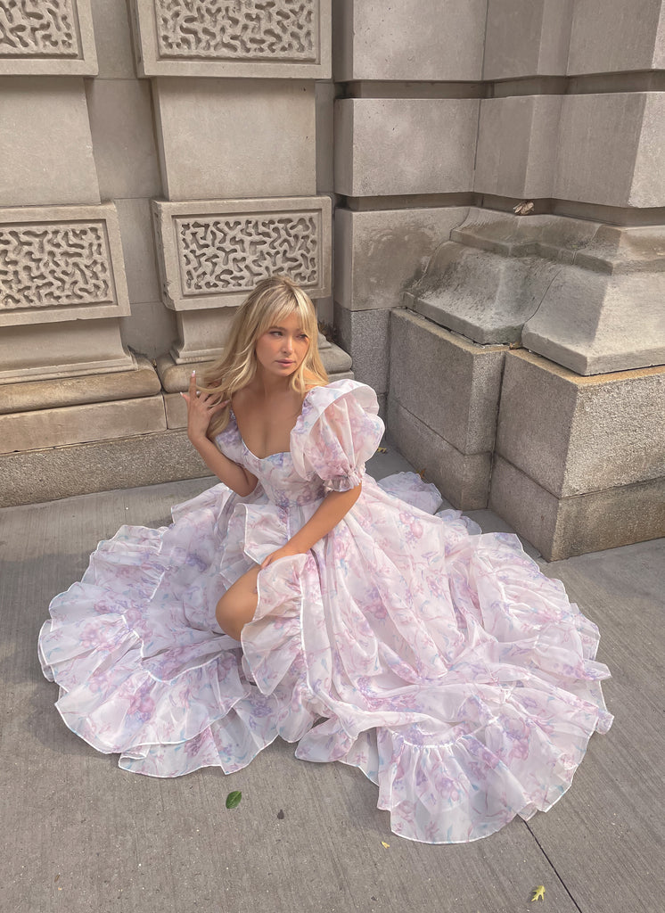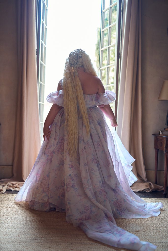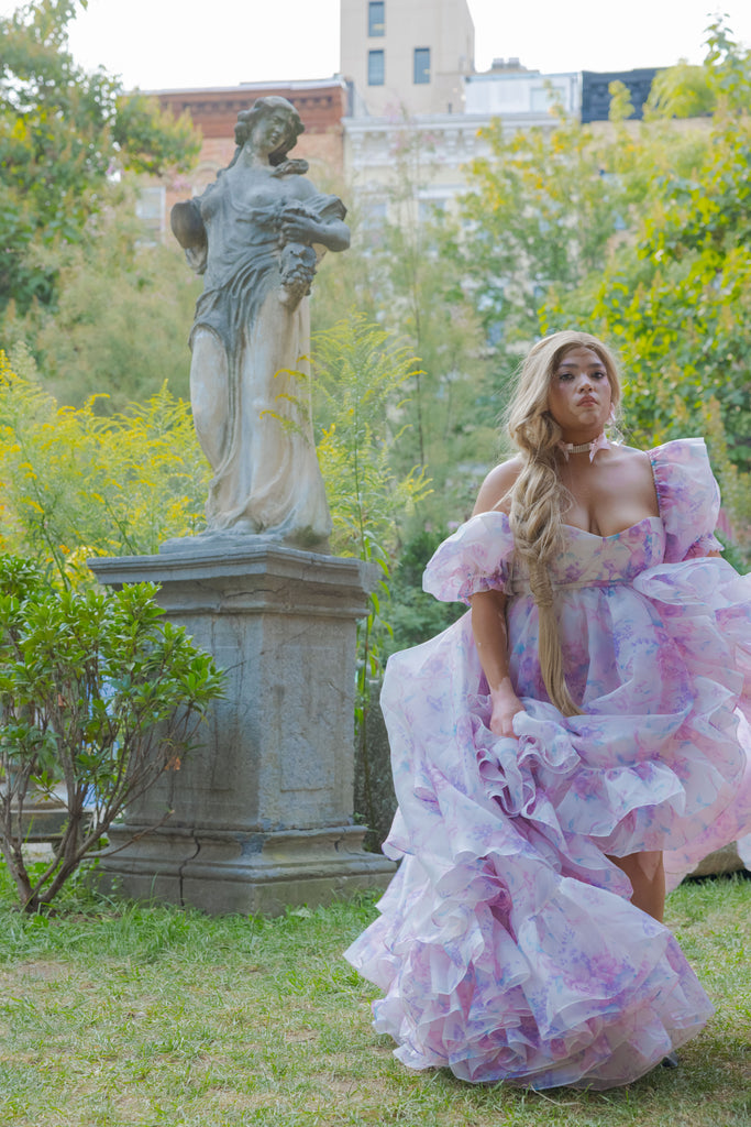 Ball gowns are packed with our branded garment bag and pink velveteen & gold logo hanger. Please note that your gown may take up to two weeks to ship.