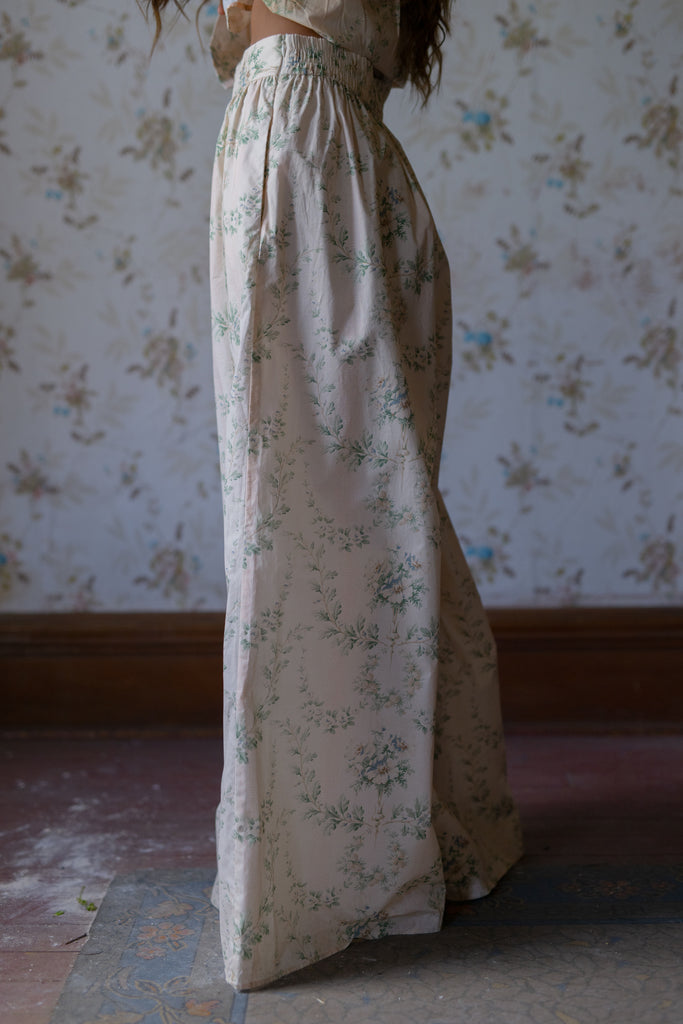 Transport yourself to an idyllic 1930s Italian holiday with The Villa Jo pants. Designed with a vintage-inspired crosshatch botanical print, these wide-leg pants feature a cotton waistband, an elastic back for comfort, and a side zip closure for convenience. These breezy bottoms are ideal for strolling through sun-drenched piazzas or sipping Aperol spritzes.